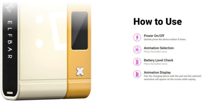 Latest update: Elf Bar Snap Battery Kit will come with a new and improved battery with led screen display with animation and battery indicator functions.