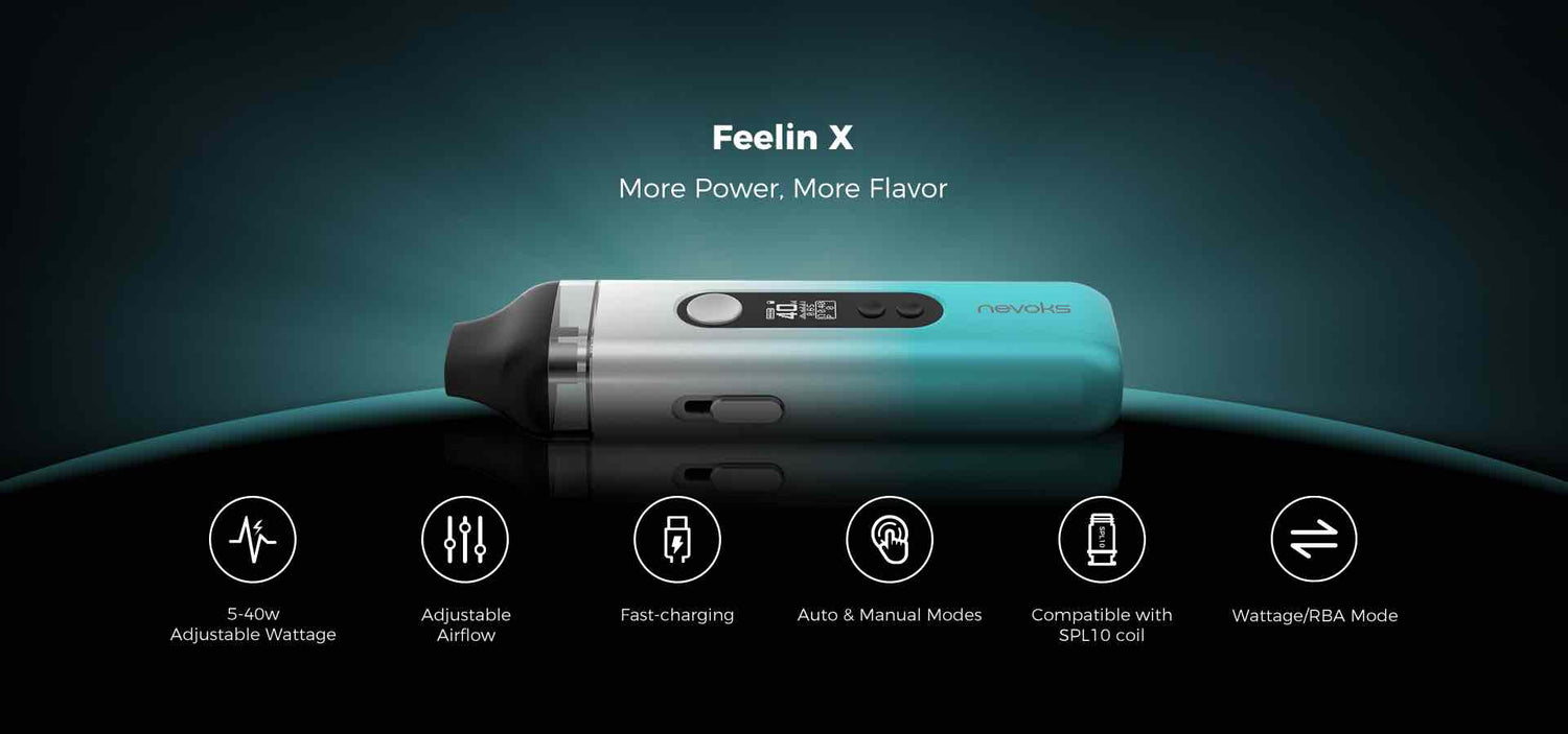 The Nevoks Feelin X Pod System kit will satisfy both MTL and half DL, encasing a long-lasting integrated 1600mAh battery, full variable voltage, and holds up to 5mL capacity.